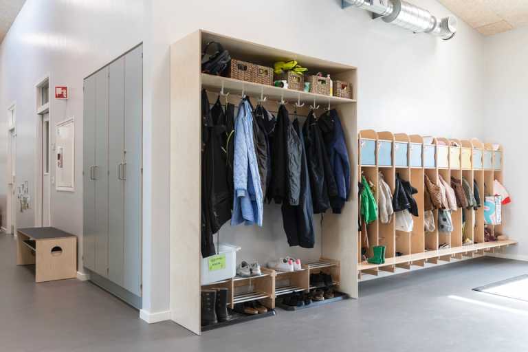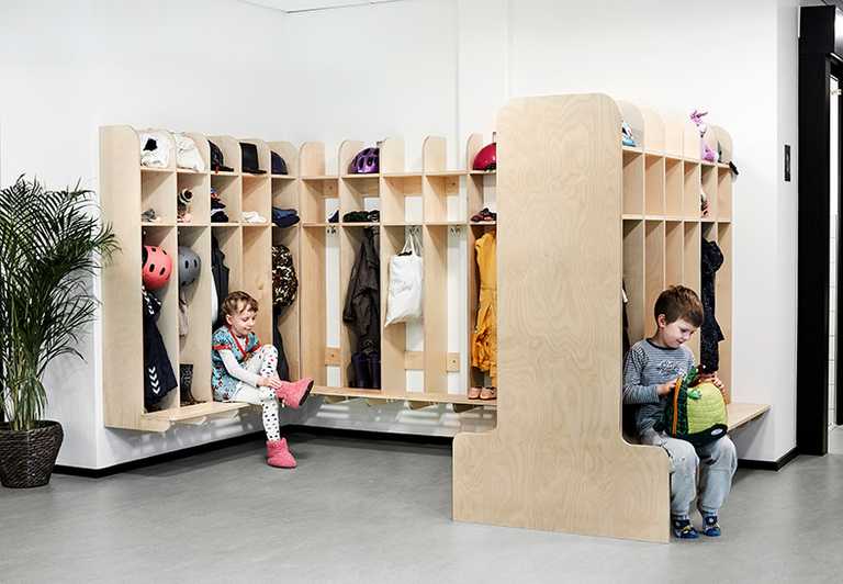 Vi hjælper gerne med indretningsforslag og pris på børnegarderober til institution eller skole.