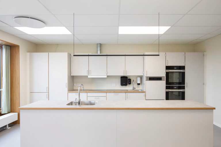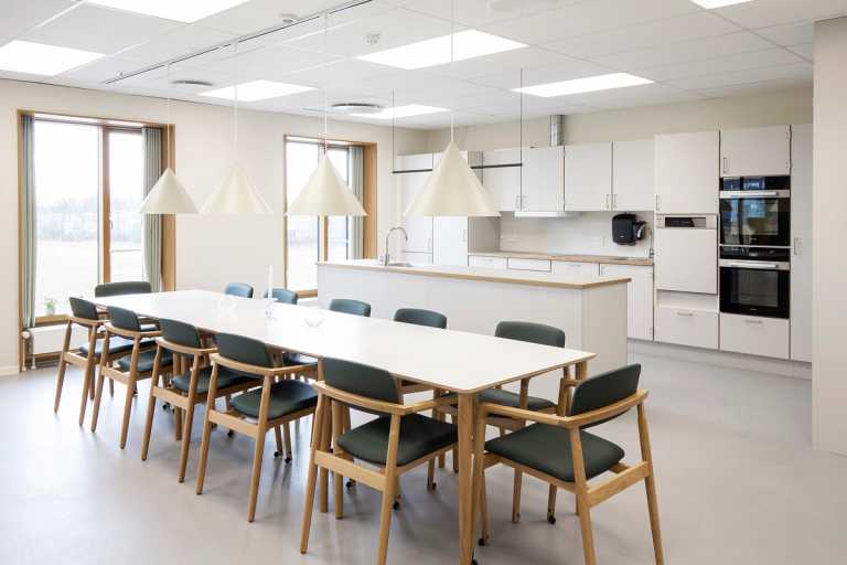 Kolon har leveret fælleskøkkener, personalekøkkener og garderober til omklædningsrum på Hyrdevænget plejecenter.