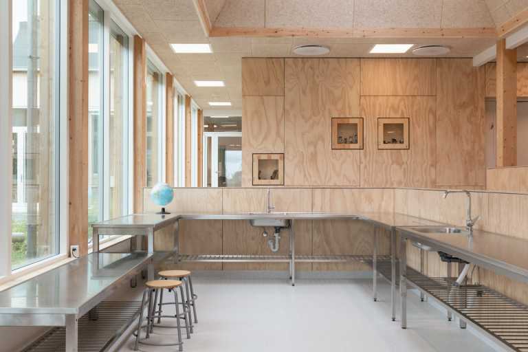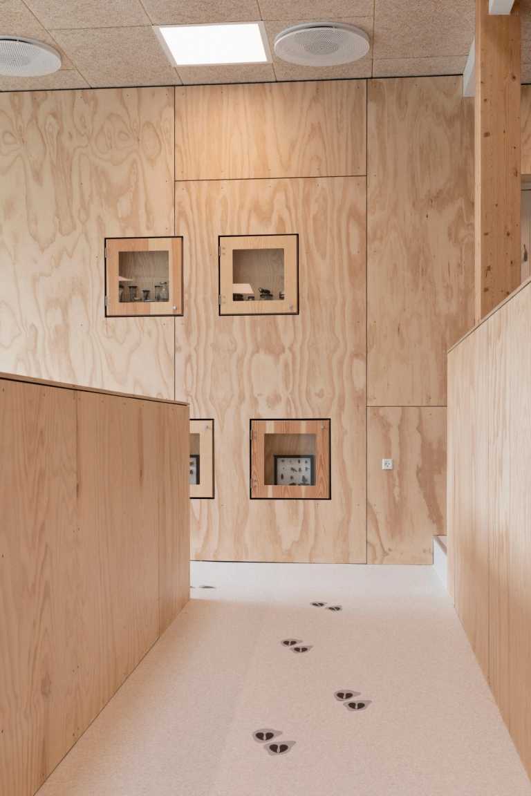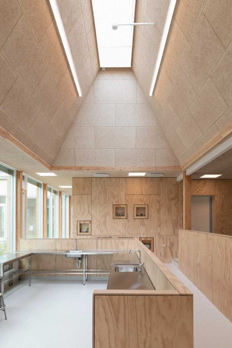Børnehuset er opført i enkle og naturlige materialer i et råt udtryk, der inviterer til at blive brugt.