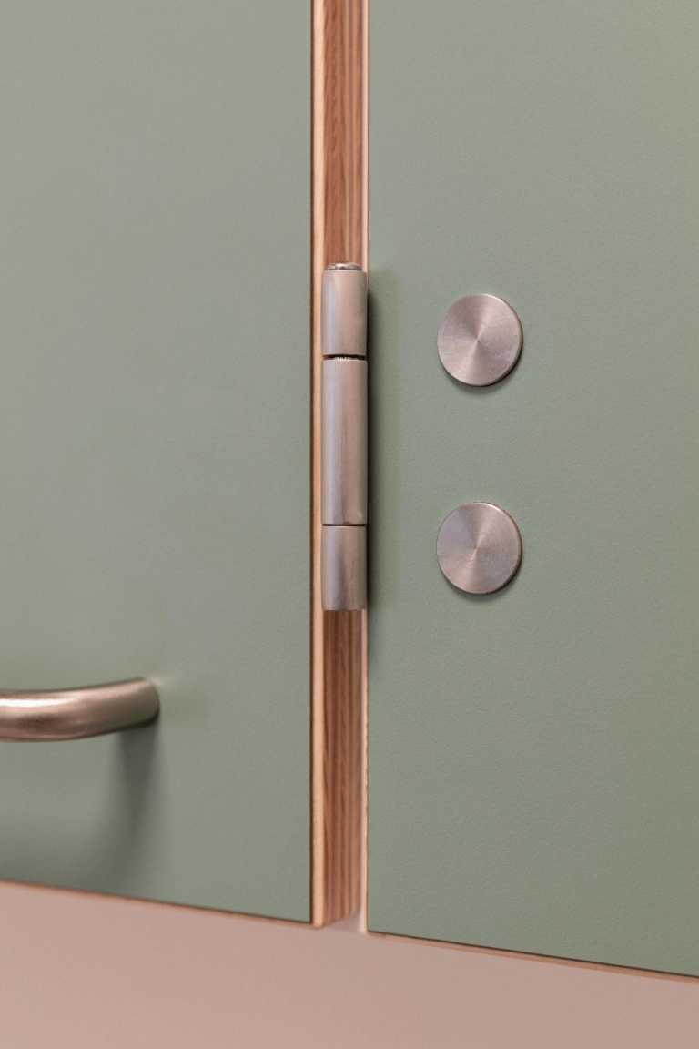 Holdbare materialer hele vejen igennem, her kan nævnes laminat, krydsfiner, rustfri stål, kompakt laminat og naturligvis vores Kolon hængsler med 50 års garanti.