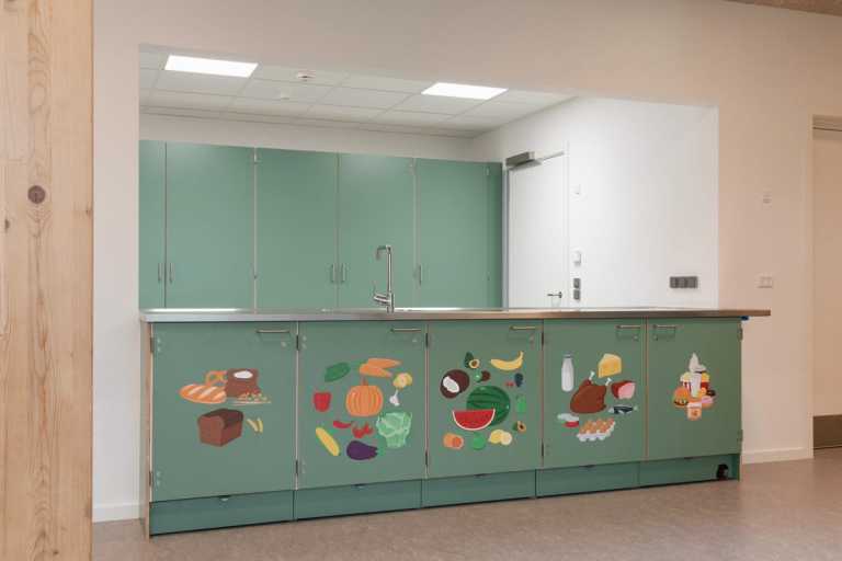 Flot institution med plads til 144 børn med 6 grupperum.