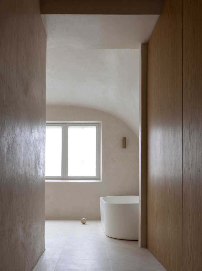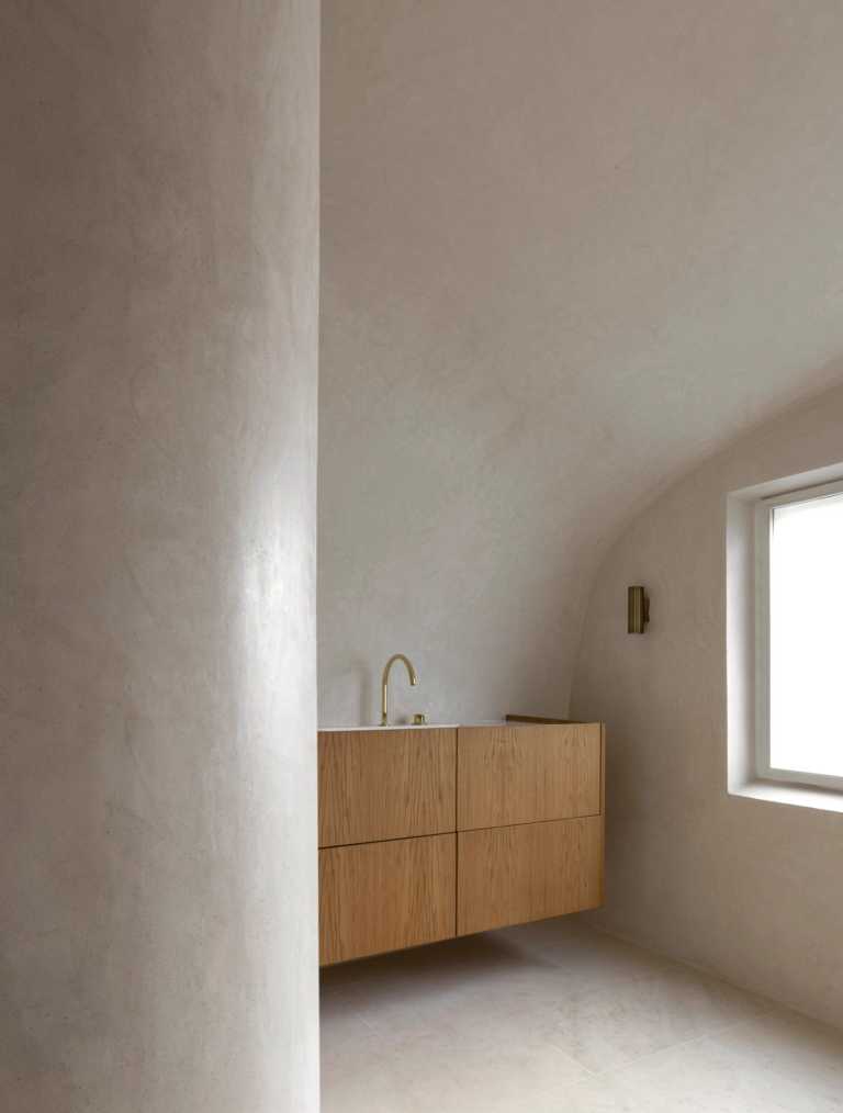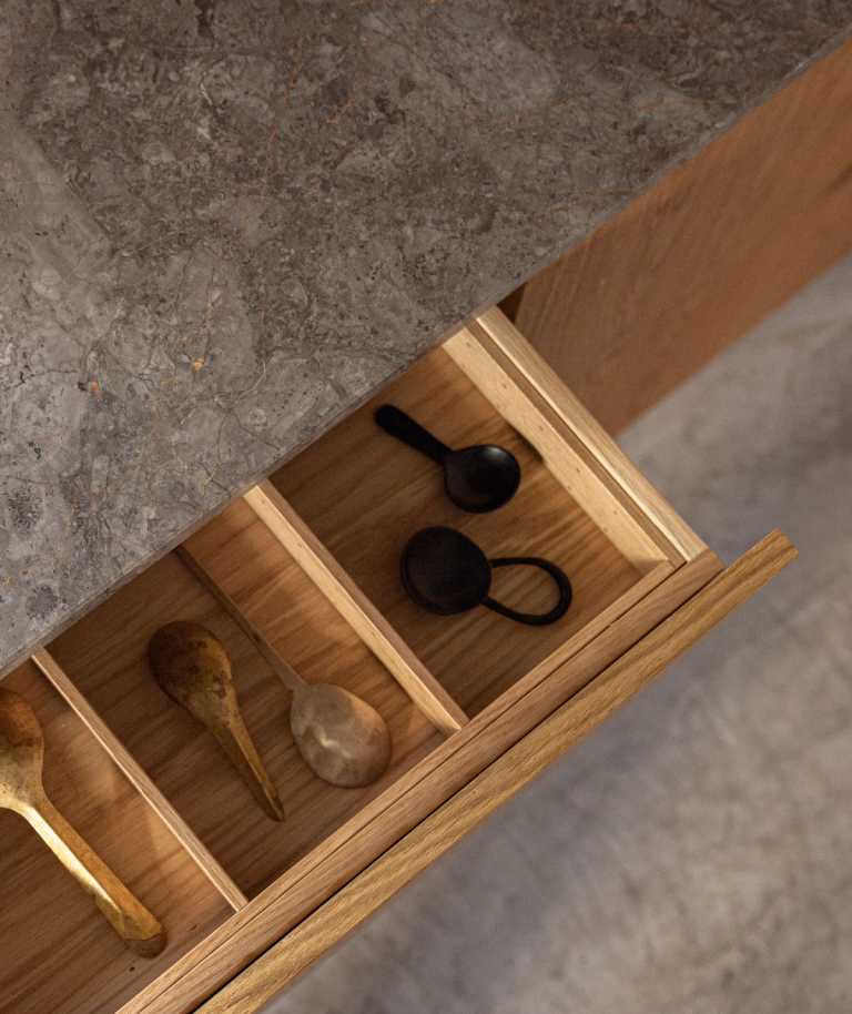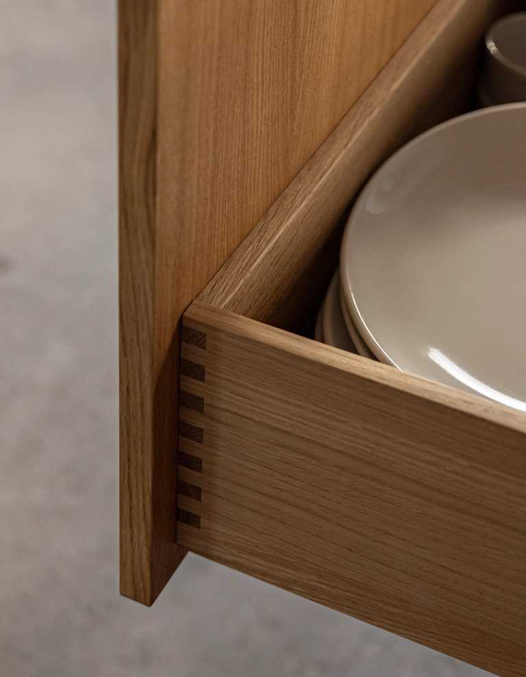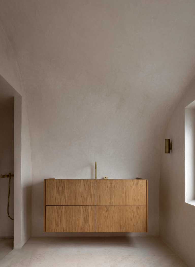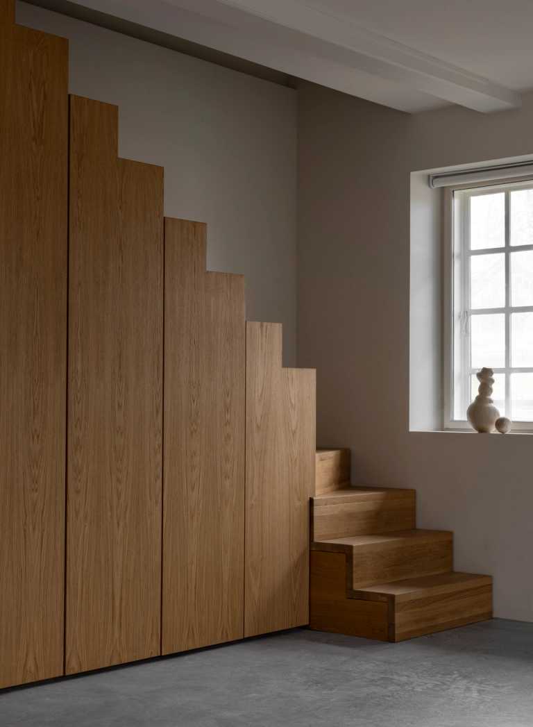 Gennemført villa der fuldender stilen med snedkerinventar i varme naturmaterialer