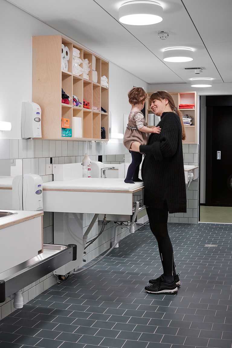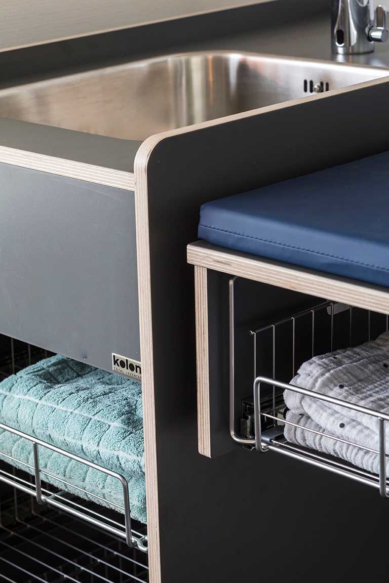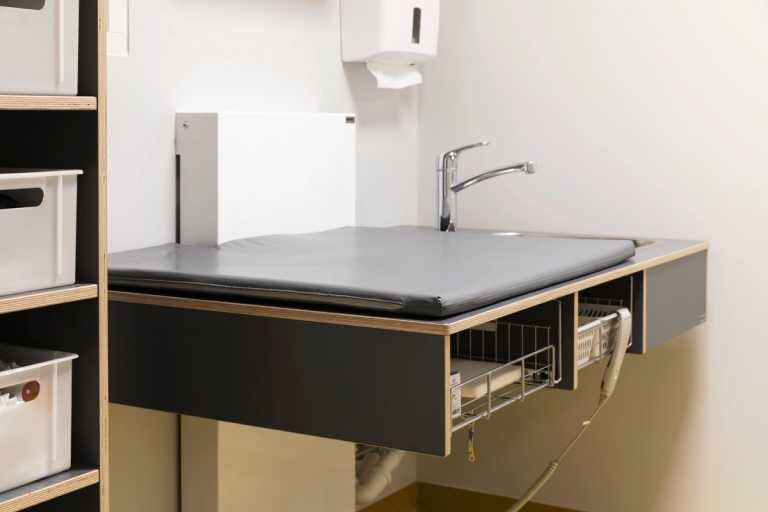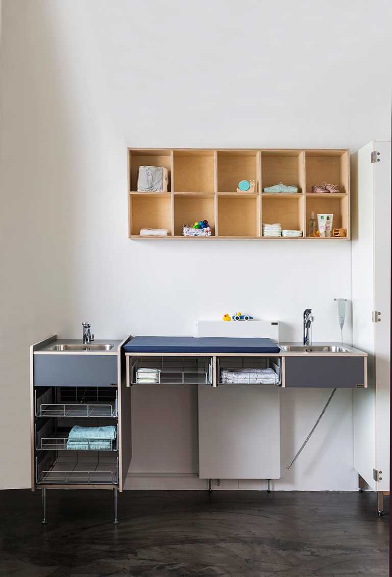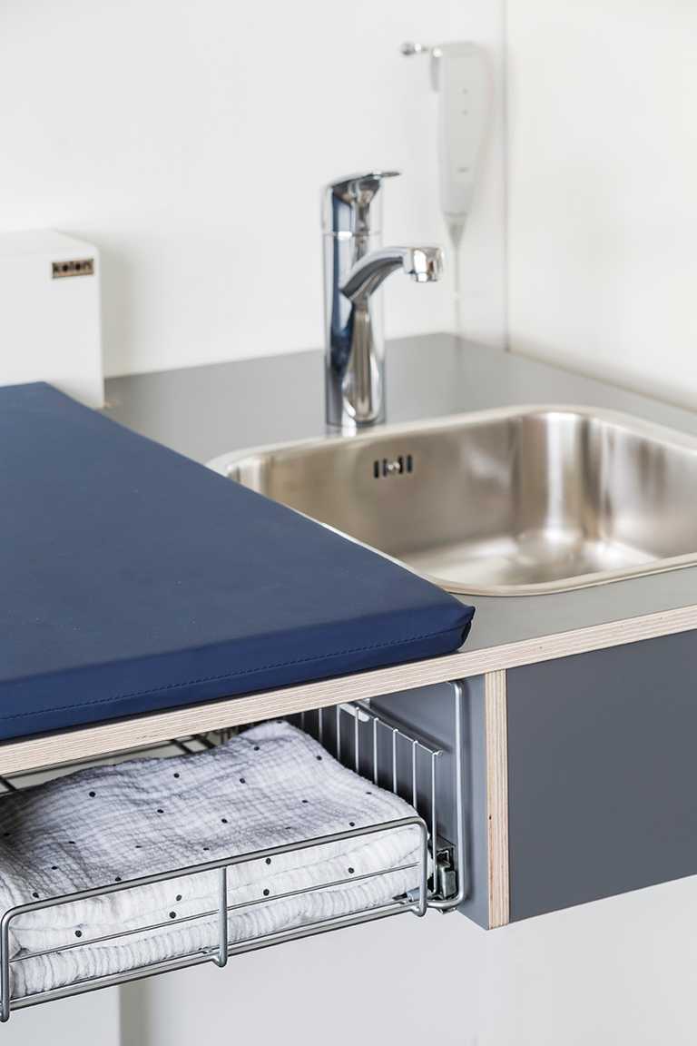 Det helt korrekte materialevalg er med til at sikre optimal rengøringsvenlighed omkring puslebordene, hvilket giver en bedre hygiejne. Det er netop brugervenlighed, sikkerhed og hygiejne, der har været fokusordene for udviklingen af dette funktionelle design.