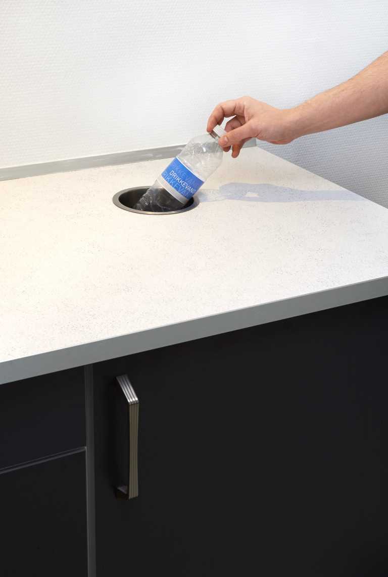 Her er specielle detaljer til affald, 3 vaske og opvaskemaskinen bygget ind i den rigtige arbejdshøjde.