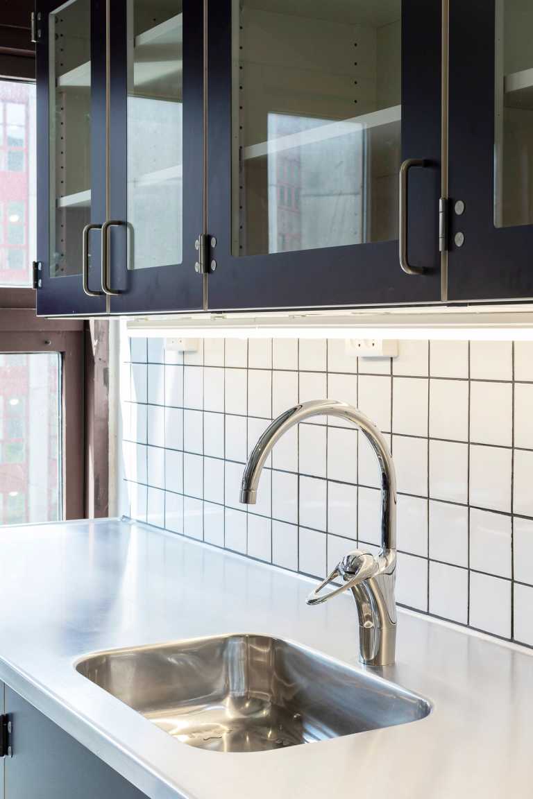 De 16 køkkener er udført i solide materialer, så de kan holde i mange år frem. Der er naturligvis brugt vores gennemboltet Kolon hængsler i rustfri stål med 50 års garanti.