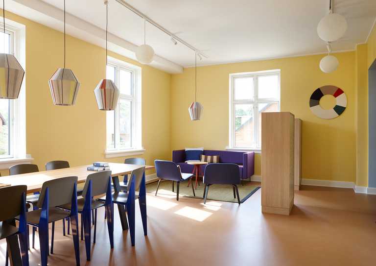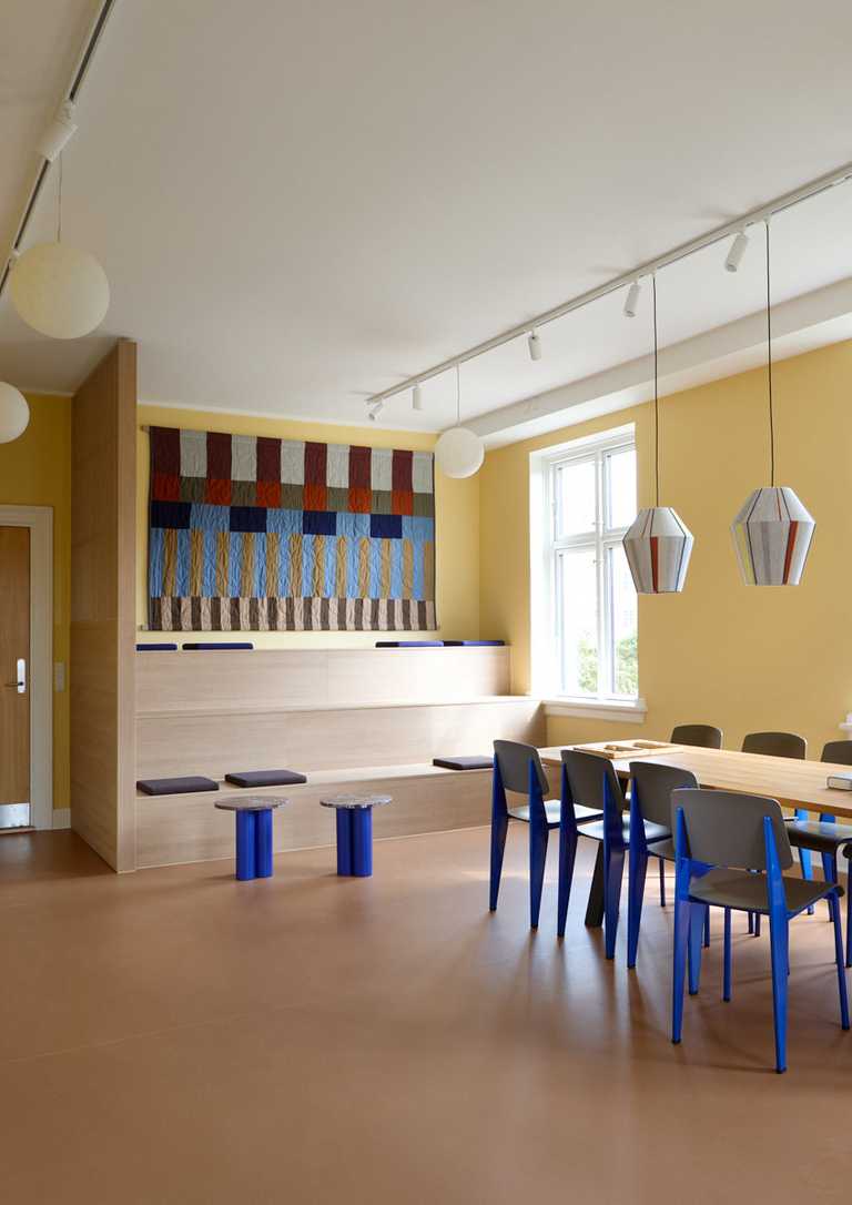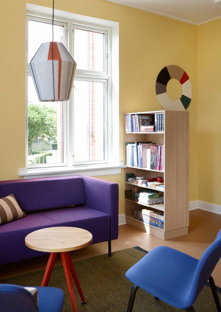 Hyggeligt samlingssted for eleverne med sidde podie og hygge kroge