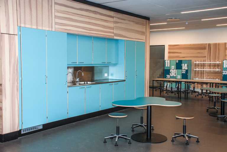 Vores designløsninger er altid unikke og innovative i deres udformning, så du kan være sikker på at få et unikt resultat, der passer med de rummelige og fysiske omstændigheder på skolen eller uddannelsesstedet – også når det gælder fag som madkundskab.